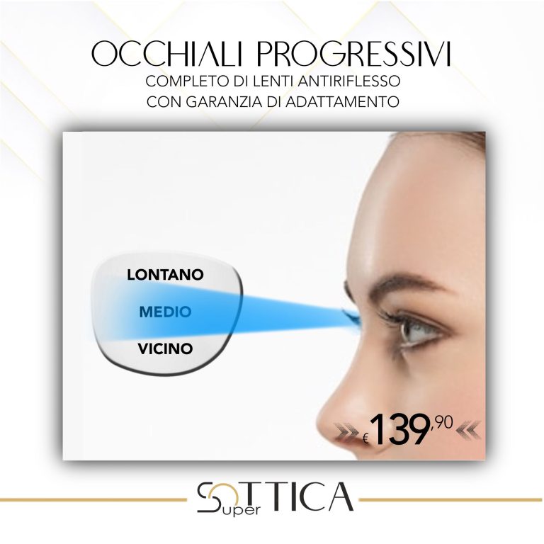 Su tutti i prodotti e alcuni servizi, Super Ottica viene incontro alle tue esigenze con offerte speciali per occhiali e lenti a contatto, inclusi pacchetti convenienti. Per tutto l’anno puoi approfittare di offerte base, come occhiali da vista completi con lenti antiriflesso a 49,90 euro, oppure occhiali progressivi antiriflesso, con garanzia di adattamento a 139,90 euro. Qui, trovi anche l’occhiale completo Transitions, a 89,90 euro, lenti intelligenti alla luce, che si adattano dinamicamente al variare delle condizioni di luminosità. Super Ottica ti garantisce anche il controllo gratuito della vista. Prenota il servizio.